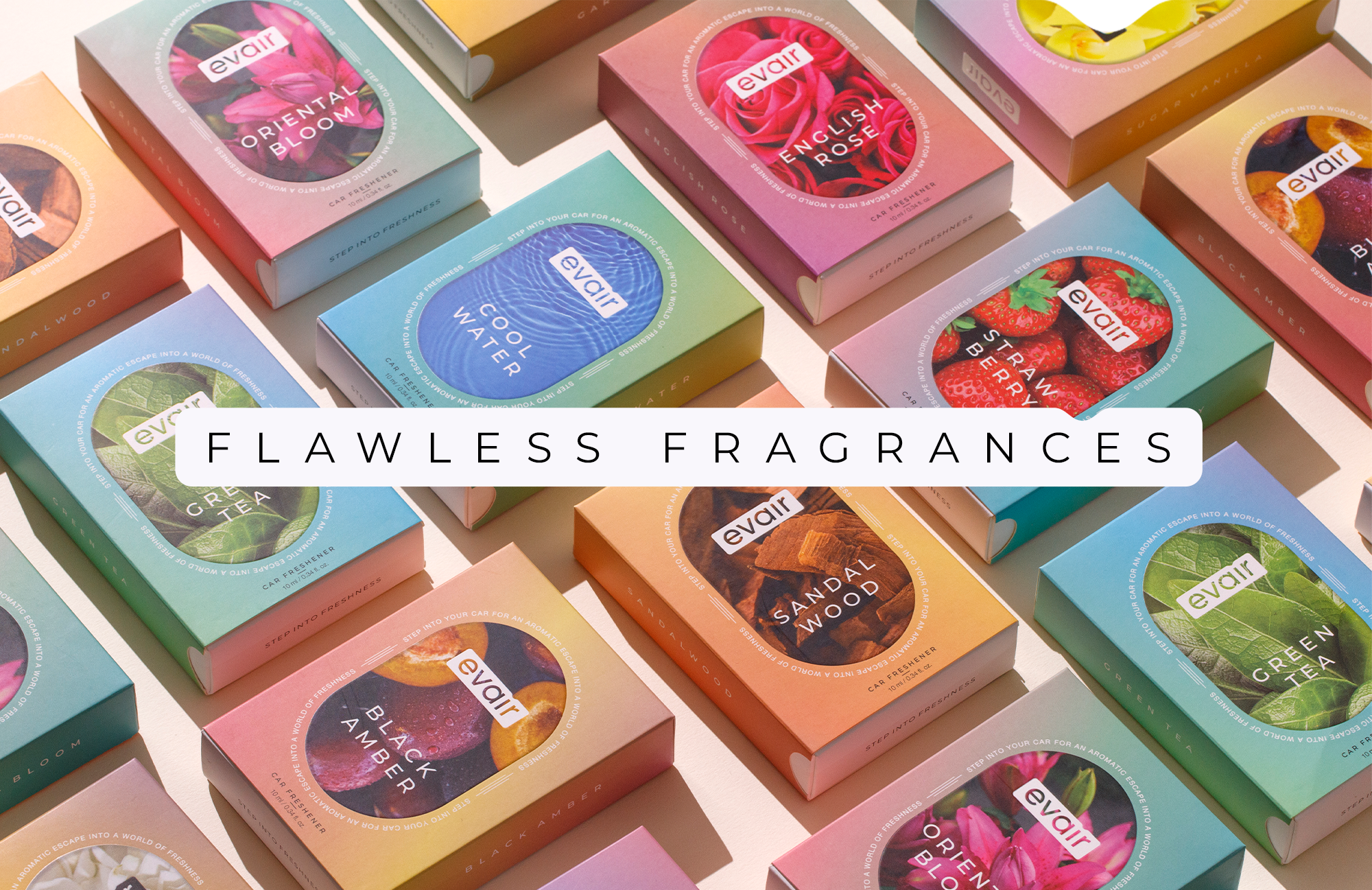Evair welcomes you to a world of freshness as soon as you step into your car. The name Evair, combining the words "everyday" and "air”, is designed to offer an everyday aromatic escape by diffusing a refreshing aroma in the air. Special absorbent technology is used to disperse these flawless fragrances to ensure a calm and lively ambience.